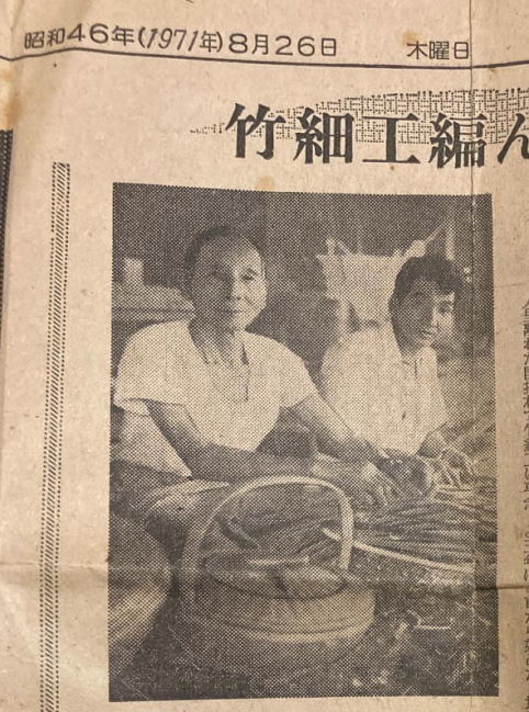 そして、健次さんのお父様、貞喜さんもまた名人でした。 明治30年のお生まれで、かつて何十人と弟子を取られたそうで、戦前は水俣実務学校(今の水俣高校)で竹細工の講師もされていたとのこと。 下写真は、健次さんの兄Mさんと一緒にカゴを作っているときのもので、飯じょけは、一日に3個(!)も作られたそうです。